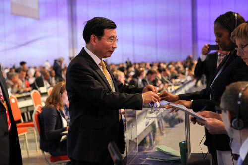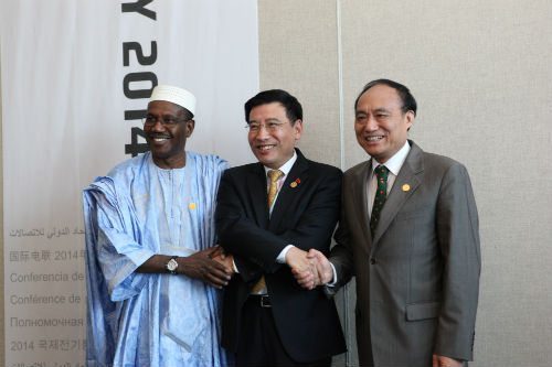 10月27日,工业和信息化部部长苗圩出席国际电信联盟2014年全权代表大会理事国选举。168个成员国参与投票,我国以142票成功连任理事国,得票在中国所属的亚洲和大洋洲区中居第一位。