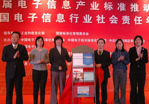 2013年1月10日上午,第五届电子信息产业标准推动会暨中国电子信息行业社会责任年会在京举行。会上,中国电子工业标准化技术协会社会责任工作委员会(以下简称“中电标协社责委”)发布了《中国电子信息行业社会责任指南》和《电子信息行业社会责任典型实践案例集》,《指南》为电子信息行业的企业和有关组织履行社会责任提供了指引,《案例集》则向社会分享了电子信息企业履行社会责任的先进理念、创新做法和成功经验。联想、英特尔、诺基亚等3家公司在会上发布了年度社会责任报告。