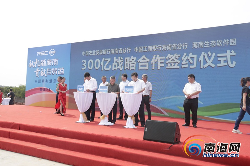 中国农业发展银行、中国工商银行与海南生态软件园300亿战略合作签约现场。南海网记者 刘洋 摄