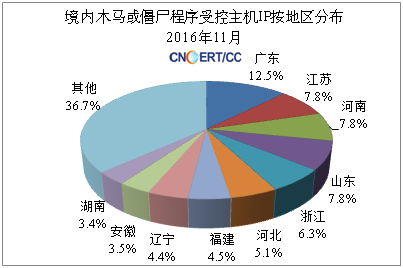 图1:中国大陆木马或僵尸受控主机IP按地区分布