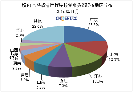 图2:中国大陆木马或僵尸控制服务器IP按地区分布