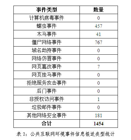 计分别如表1和表2所示。(注:此统计全包括海南互联网应急中心